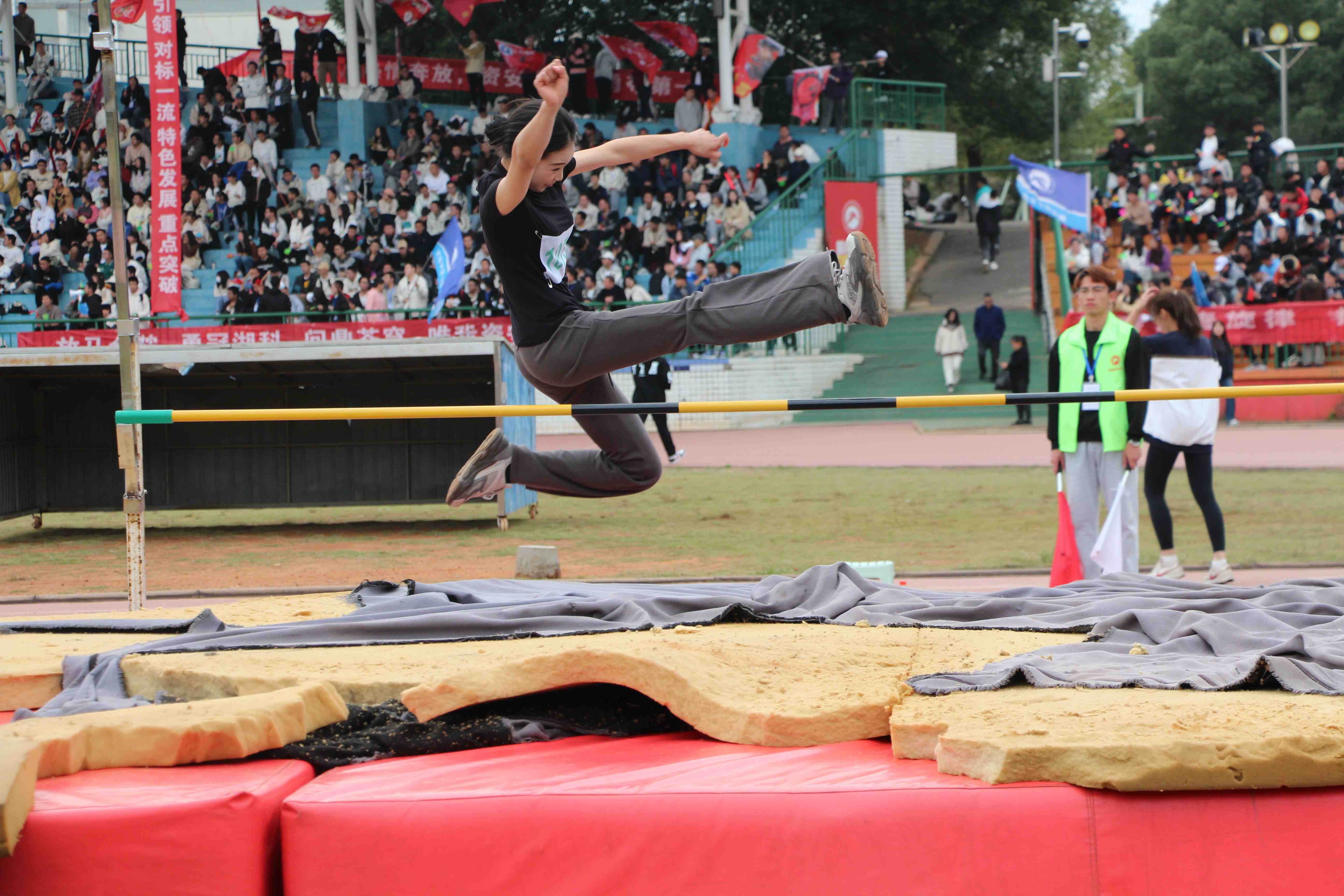 在我校2023年“中国联通杯”秋季运动会中,无码影片学生代表队表现出色,取得了优异的成绩。其中,23级艺舞一班王羽同学在跳高项目中获得了女子甲组第一名,为无码影片争得荣誉。