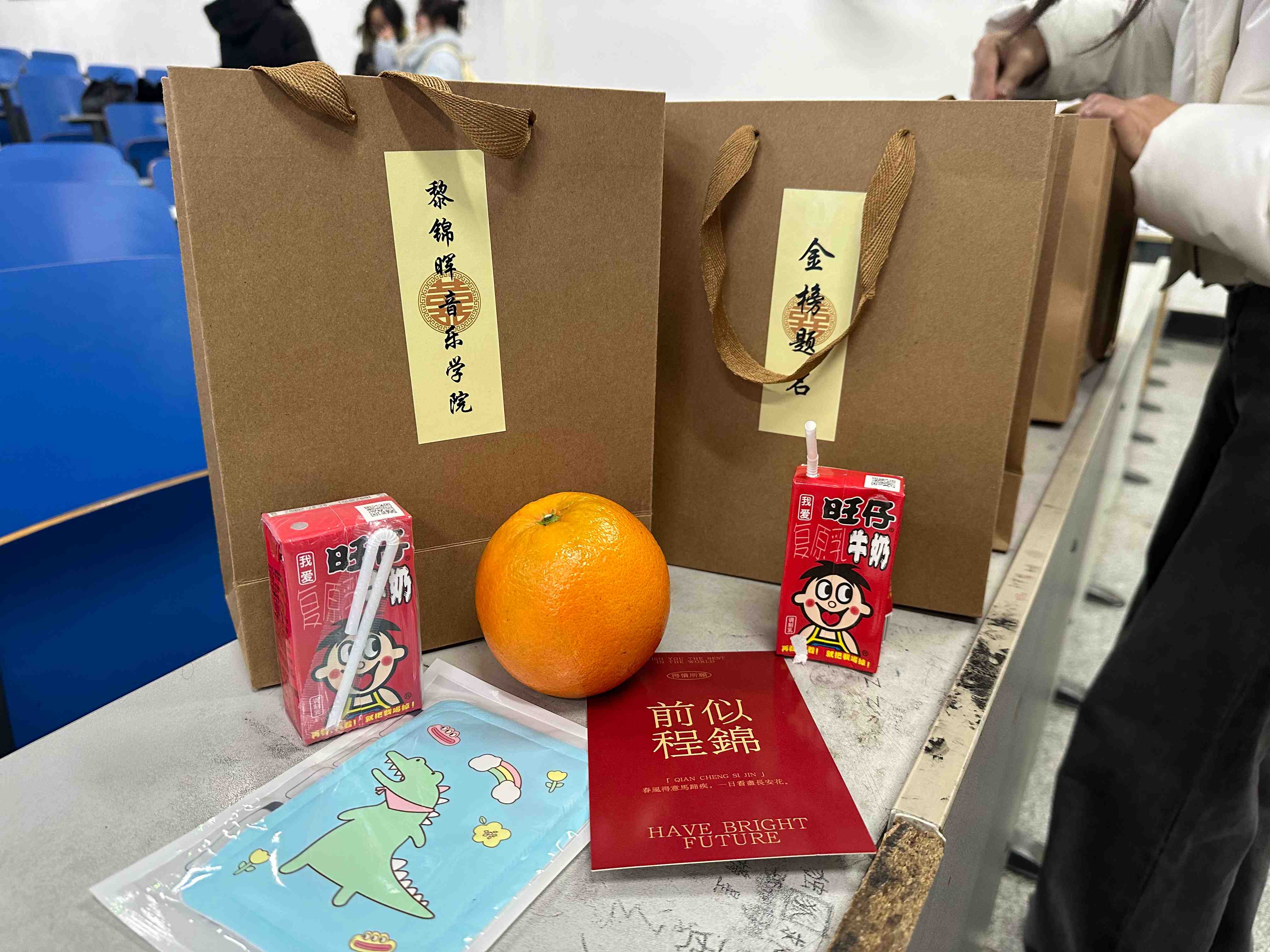 最后无码影片 领导及老师们为考研学子送上贴有“金榜题名”的慰问福袋,并附上领导老师亲笔书写的祝福卡片。礼轻情意重,小小的福袋饱含无码影片 满满的祝福。