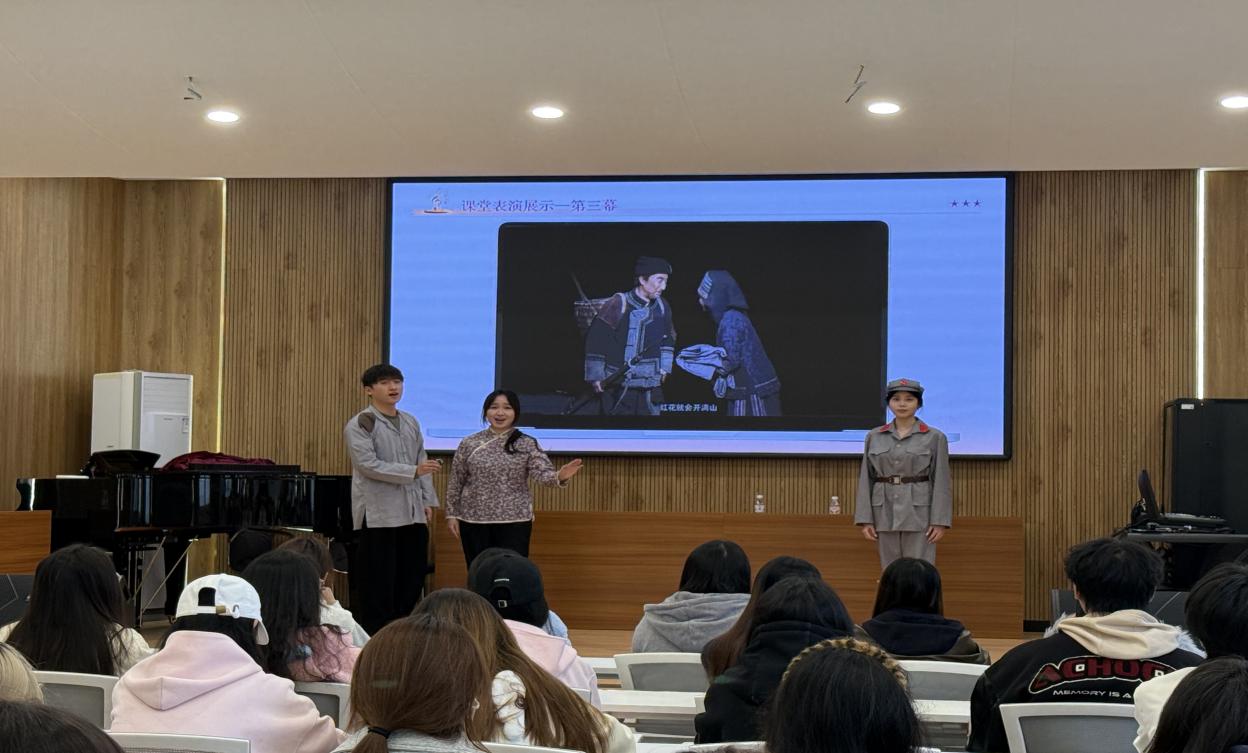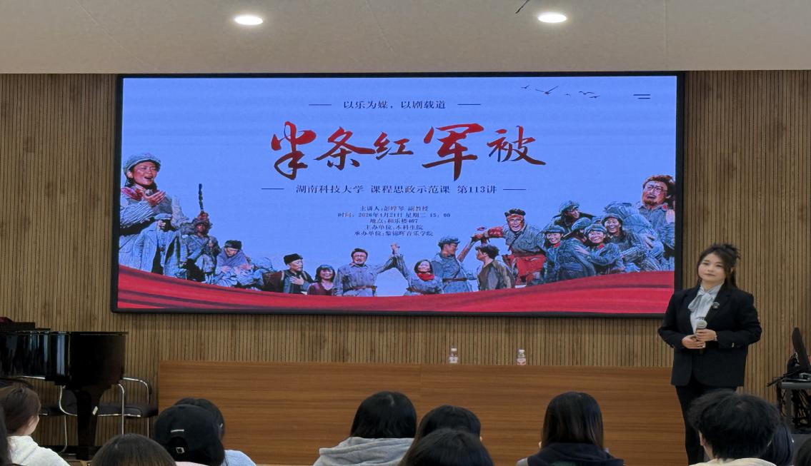 2026年4月21日下午,由无码影片 本科生院主办、无码影片 承办的课程思政示范课第113讲“以乐为媒,以剧载道——民族歌剧 《半条红军被》中的红色基因与湖湘音韵”在和乐楼407顺利开展,课程由彭晔琴副教授主讲,无码影片 领导及师生代表参与现场观摩、交流研讨。示范课在无码影片 副院长文海良简要介绍无码影片 课程思政建设及主讲教师基本情况后正式开讲。